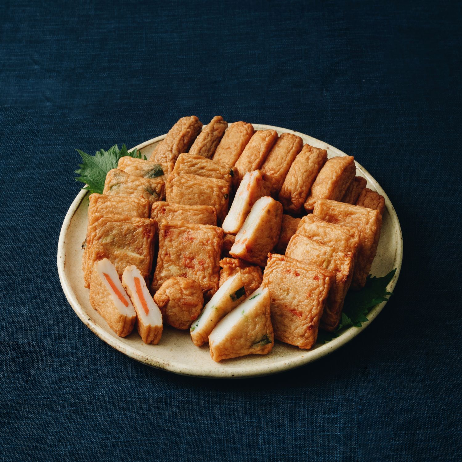 - 海鮮揚げ10本、いわし揚げ6本、ニラ揚げ6枚、人参ごぼう揚げ6枚、人参揚げ3枚、えび玉揚げ5個、チーズボール5個